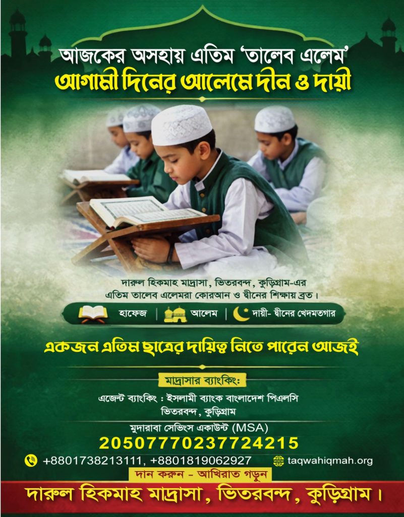 (To provide Hifz-ul-Qur’an and higher Islamic education.)